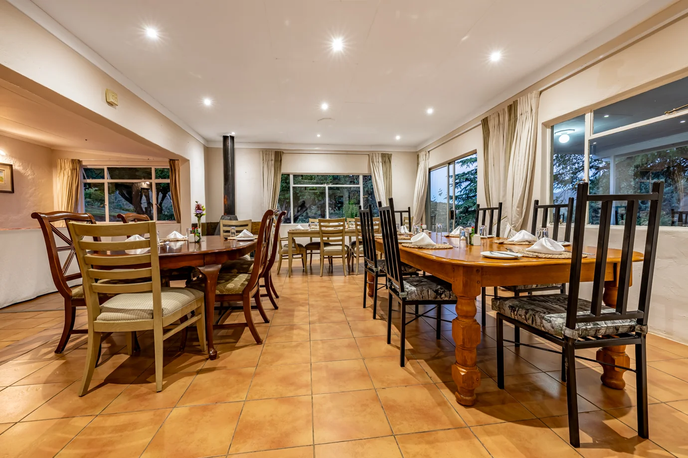 - Indoor and outdoor dining with views of the gardens, Makhaleng Valley, and Maluti Mountains.
